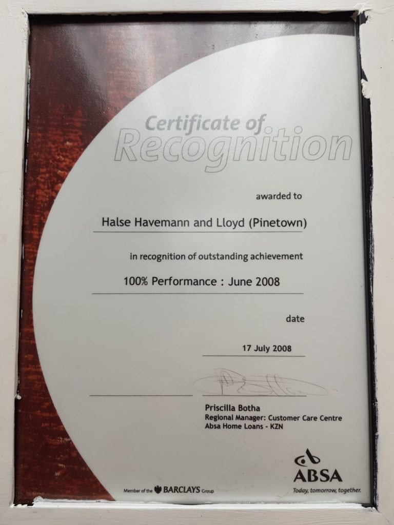 The firm has been on major Bank panels, as to Absa (initially Trust Bank) from 1969 and as to Standard Bank from 1997 and has received numerous awards from Absa for being “Top Performing Attorneys”.